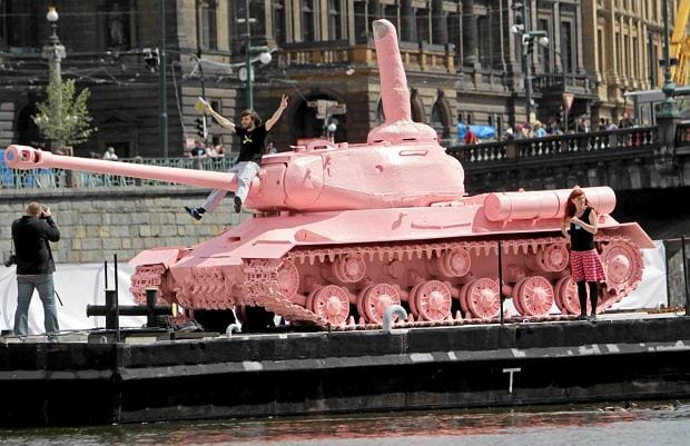 - · Pierwszy skandal: W 1991 roku pomalował na różowo radziecki czołg w Pradze, co doprowadziło do jego aresztowania za „obywatelskie nieposłuszeństwo”.
